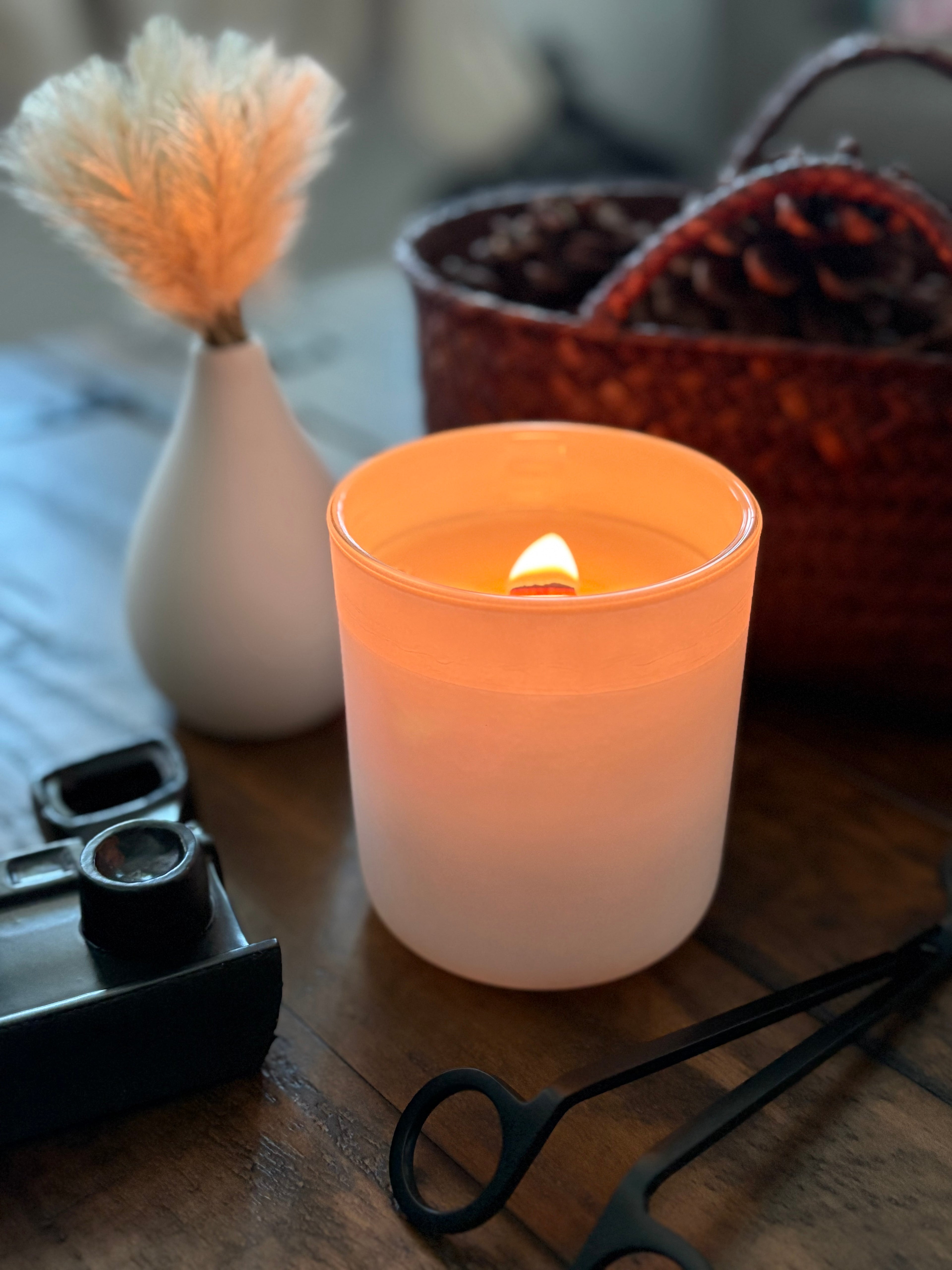 Enjoy the soothing ambiance of wood wicks as they crackle!